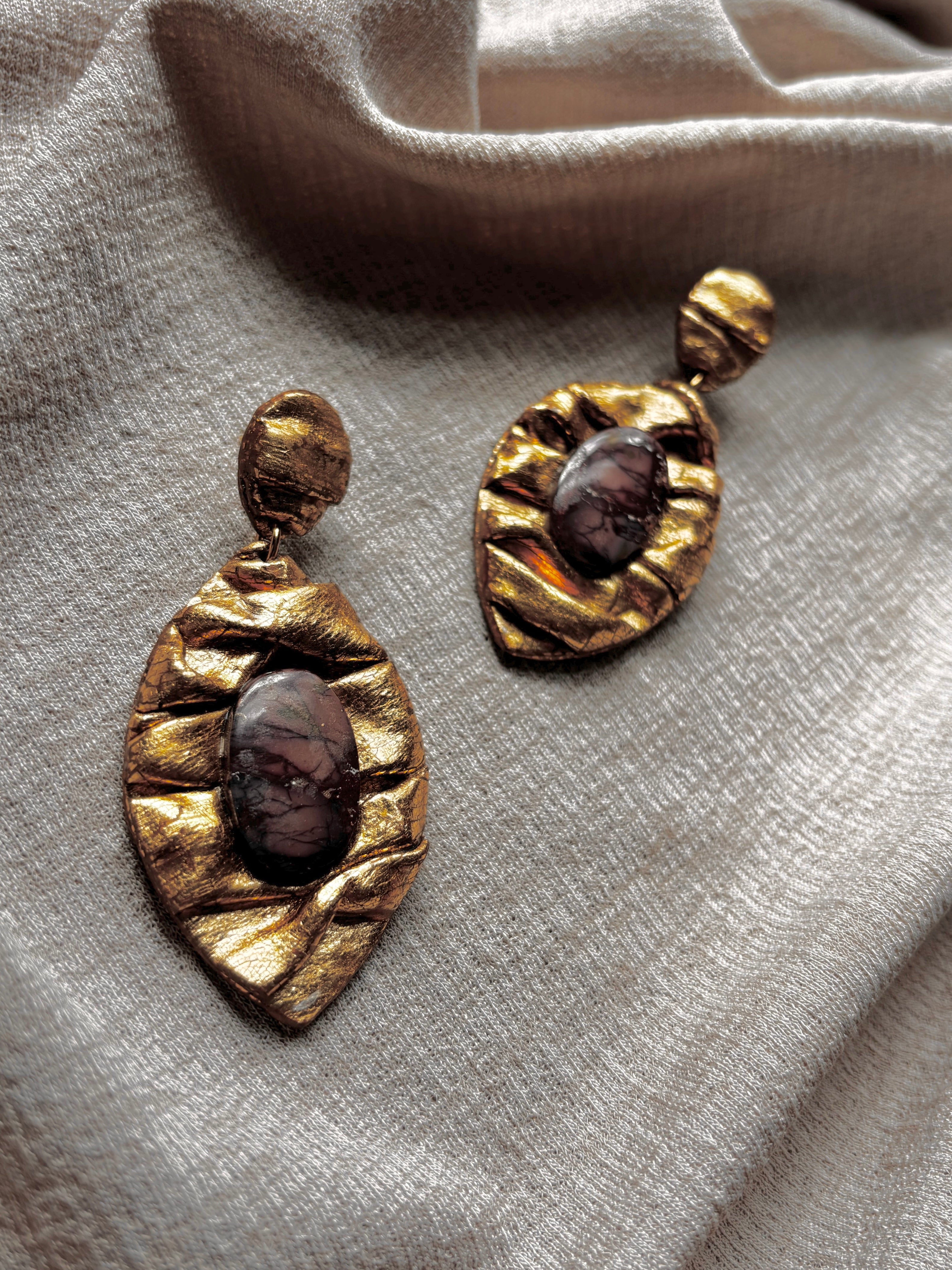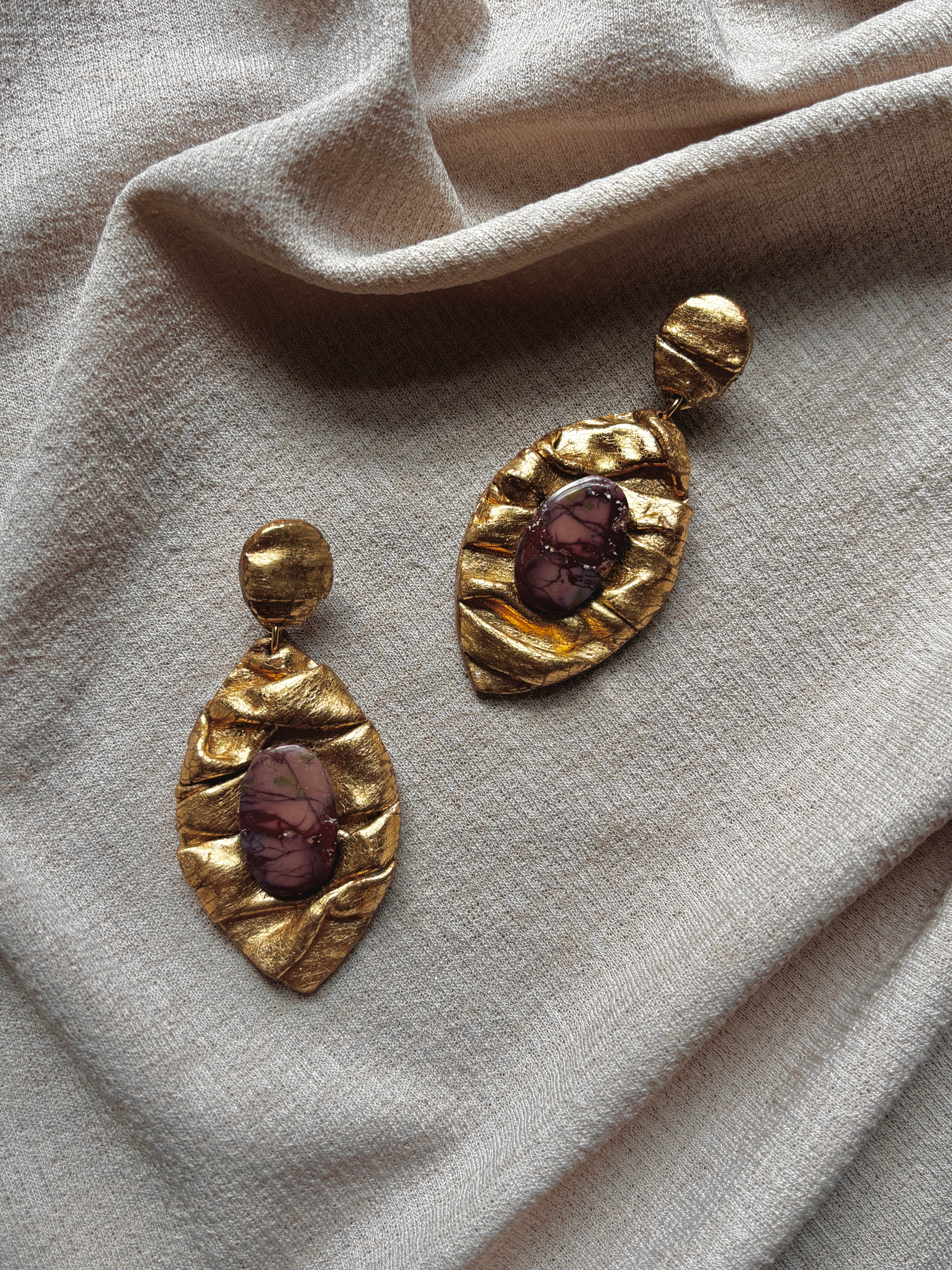 Each pair available for sale may be very slightly different to that of the image shown - due to the completely unique and handcrafted nature of all Ava and Azar earrings. For example, the placement of gold leaf detailing on the earring, or the mix of the clay colour. As stated, each pair of Ava and Azar earrings are completely unique, which is what makes them so special!
