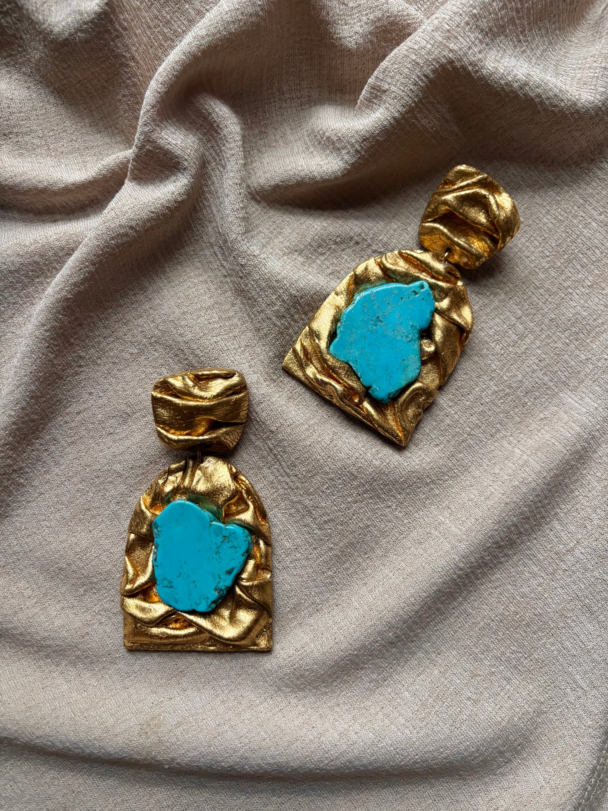 Farideh Draped Large - Antique Gold with Natural Turquoise