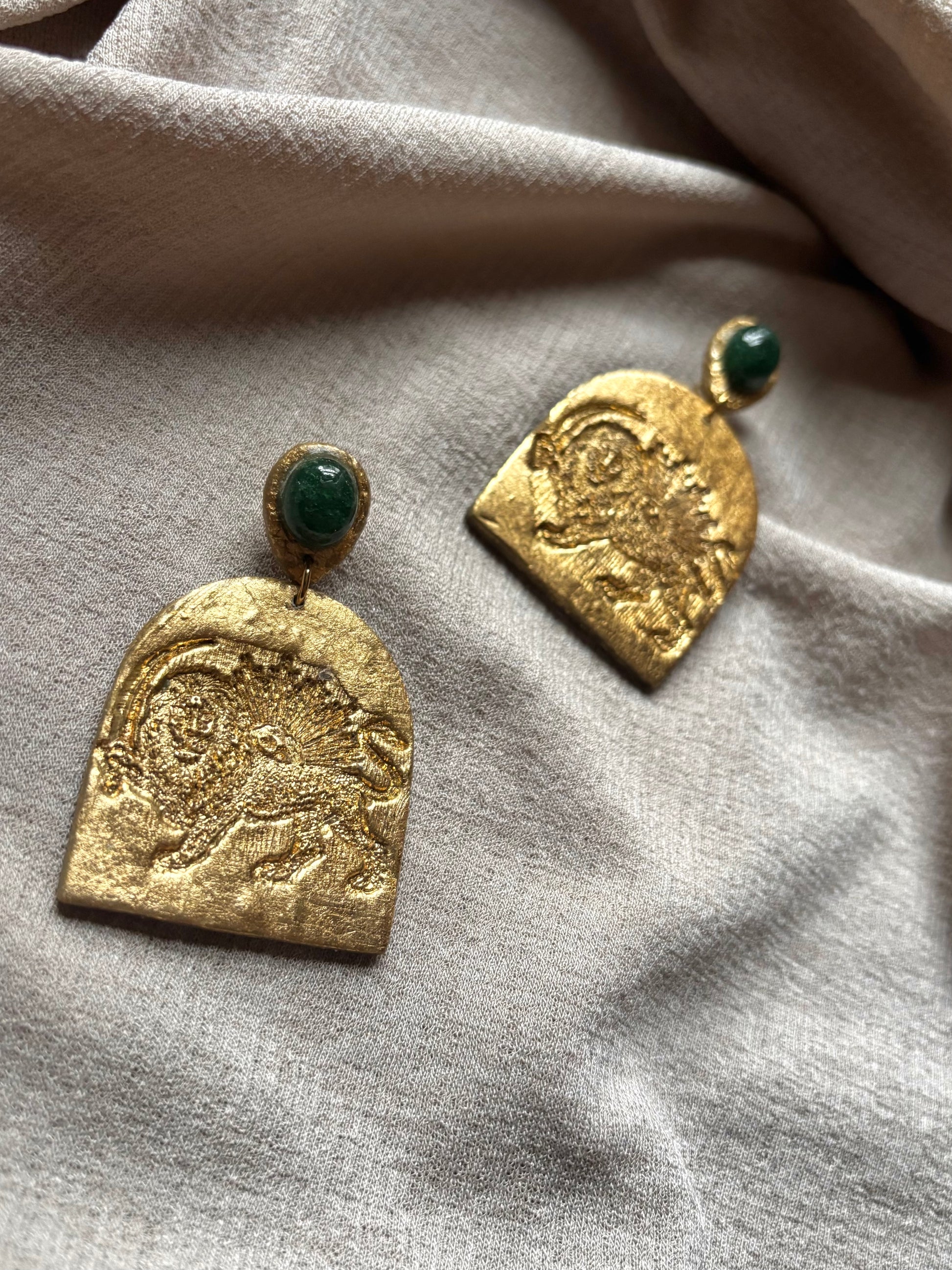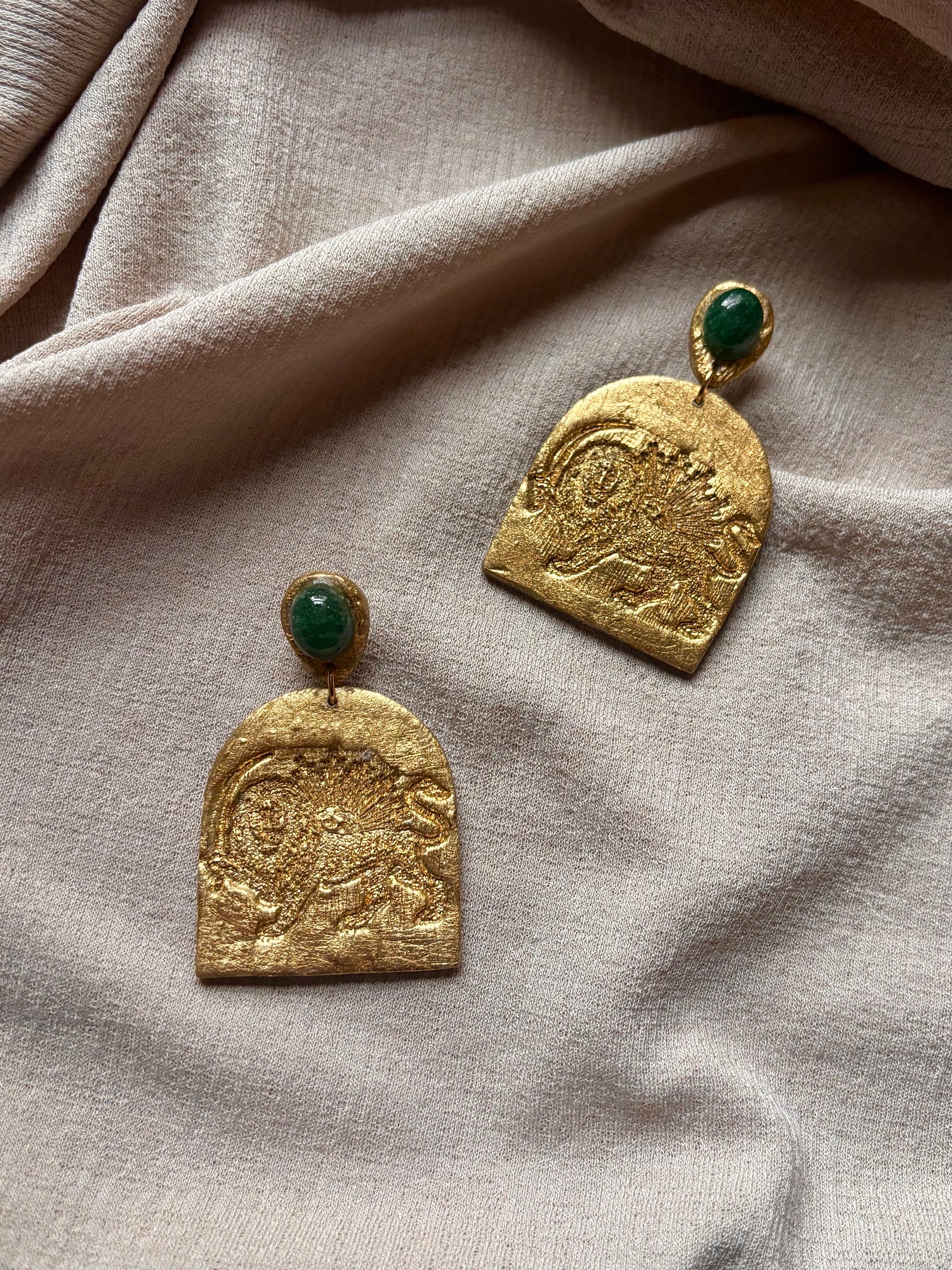 Farideh Lion & Sun - Antique Gold with Green Aventurine