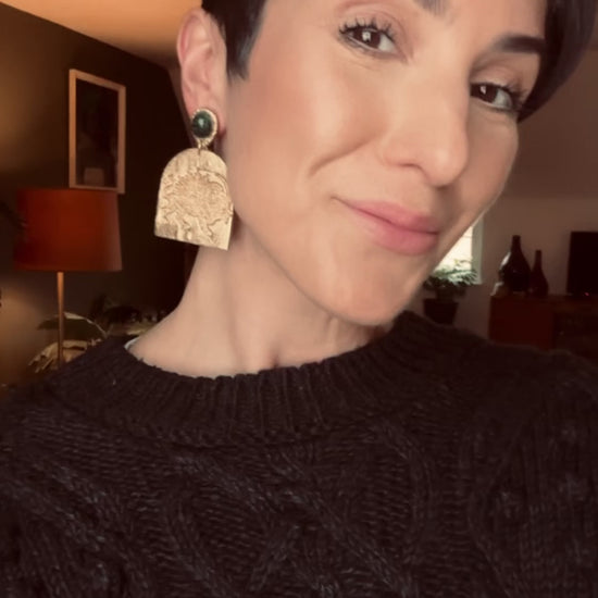 Each pair available for sale may be very slightly different to that of the image shown - due to the completely unique and handcrafted nature of all Ava and Azar earrings. For example, the placement of gold leaf detailing on the earring, or the mix of the clay colour. As stated, each pair of Ava and Azar earrings are completely unique, which is what makes them so special!